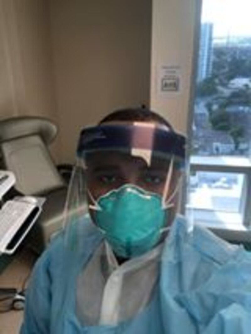 Stephen Renae, M.D., Infectious Disease, Stephen Renae, M.D., Infectious Disease, along with other Broward Health caregivers from Salah Foundation Children's Hospital with #HeartsforHealthcareWorkers. (WPLG)
